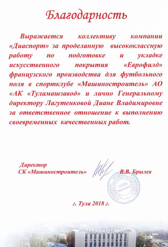 О завершении футбольного поля в г.Тула для ФК "Арсенал-Тула"