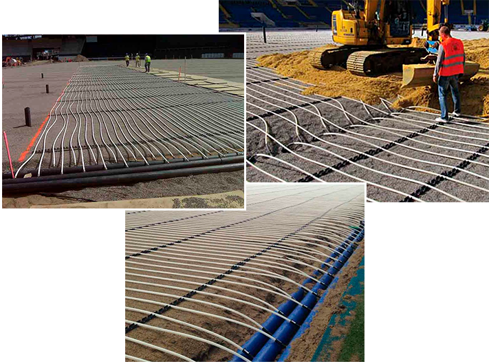Система подогрева футбольного поля позволит расширить функционал открытой спортивной арены и даст возможность использовать игровую площадку в любое время года. А значит, команда сможет тренироваться более интенсивно, раньше начинать и позже заканчивать сезон. Обогрев полей представляет собой комплексное решение для больших стадионов и других открытых площадок со спортивным газоном. Искусственно увеличивая температуру на поверхности поля, система сохраняет его игровые характеристики в межсезонье и зимние месяцы.